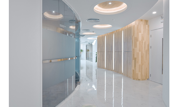 設計理念:本案的設計過程中注重形、質、色、光的整體把握。在滿足功能的同時著重空間氛圍的營造。在前臺設計中營造了簡潔而又現代的效果。在功能布局過程中,巧妙地運用了橢圓、弧形的形態,解決了視覺上帶來的單調和呆板。橢圓、弧形的運用使空間更加生動,玻璃材質的穿插使用,極好的解決了部分區域的采光問題,達到了整個空間通透、融合。在材質的使用上,各種玻璃與木飾面、渾水實木線條、乳膠漆墻面等的組合,表達了穩重而又不失活力的效果。以上材質深淺顏色的運用配合筒燈和燈帶為主,冷暖搭配的照明形式,增加了空間的層次感,使空間柔和更具人性化。
